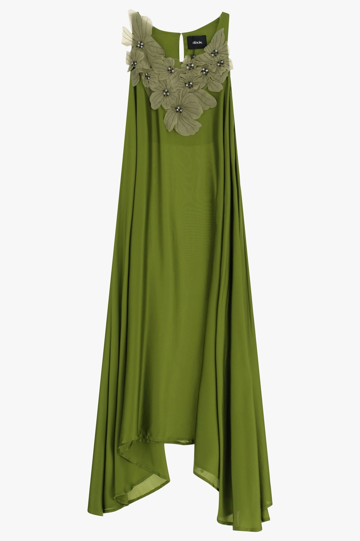 Unveil the charm of a maxi dress from Dixie that dances with every movement. Sleeveless with an elegant round neckline, adorned with delightful floral details.