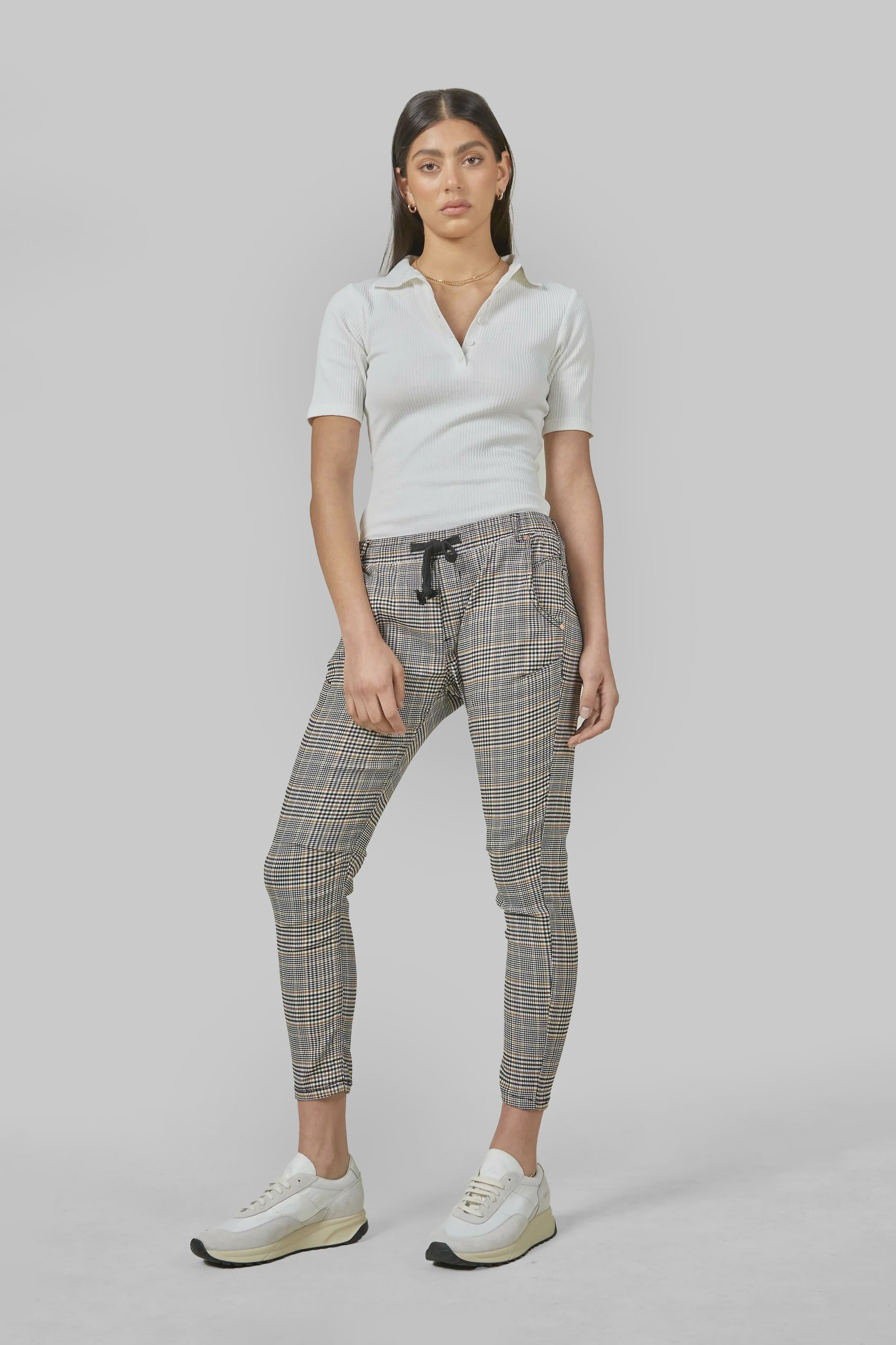 A Dricoper favourite, the Active Check jean mid-rise and cropped length this time in a Fennel Check print, complete with an elasticated waistband and sportive drawstring.