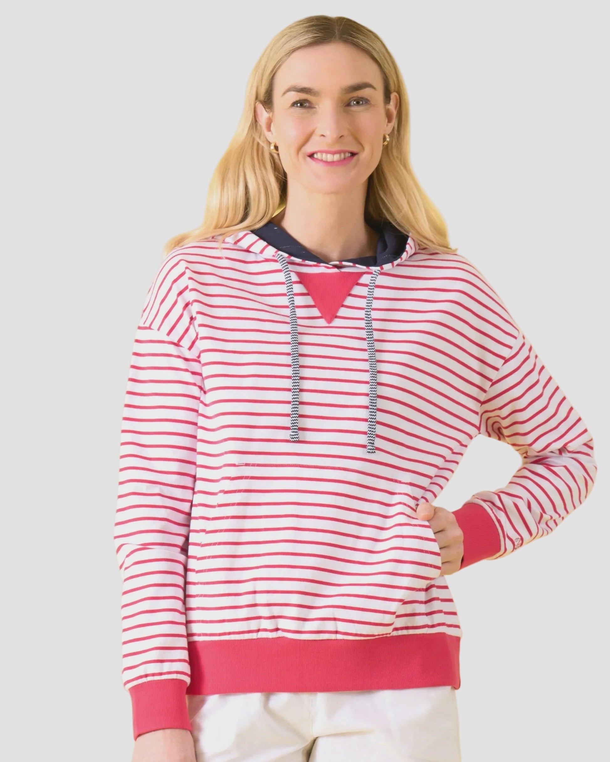 Charlie Jane have designed a relaxed, drop shoulder, easy fit hoodie. Albert is perfect for layering or wearing on its own. It features a draw cord at the neck to adjust the hood, a cozy kangaroo pocket to keep your hands warm, and contrasting ribbed cuffs and hem for a pop of colour and a snug fit.