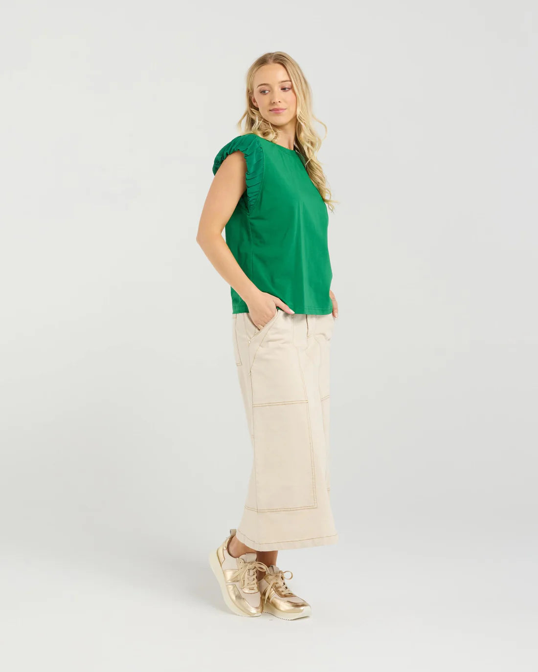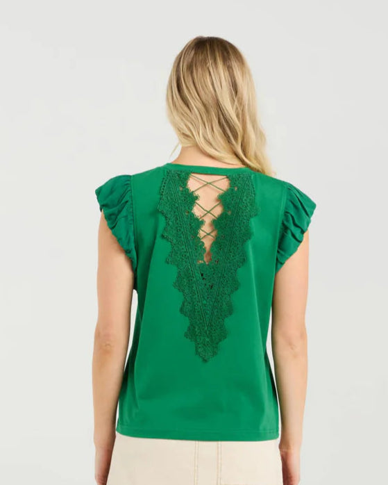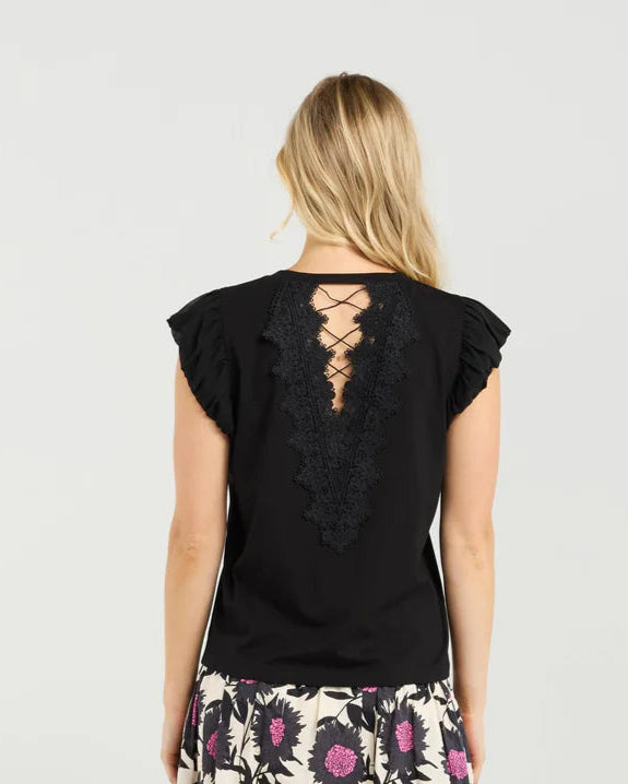 This elevated Anna tee redefines everyday ease with a touch of unexpected elegance. Cut in a refined silhouette from a soft, premium cotton blend, it features a striking lace panel at the centre back—adding a layer of delicate texture and feminine contrast.