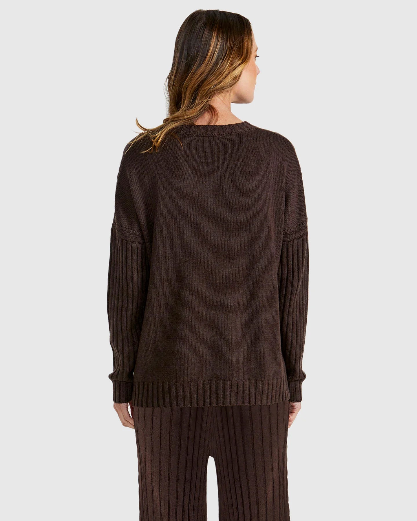 The Catalina Knit from Fate + Becker is a refined winter essential, featuring a round neckline and cable detail on the sleeves. A touch of cashmere give this a softer handle.