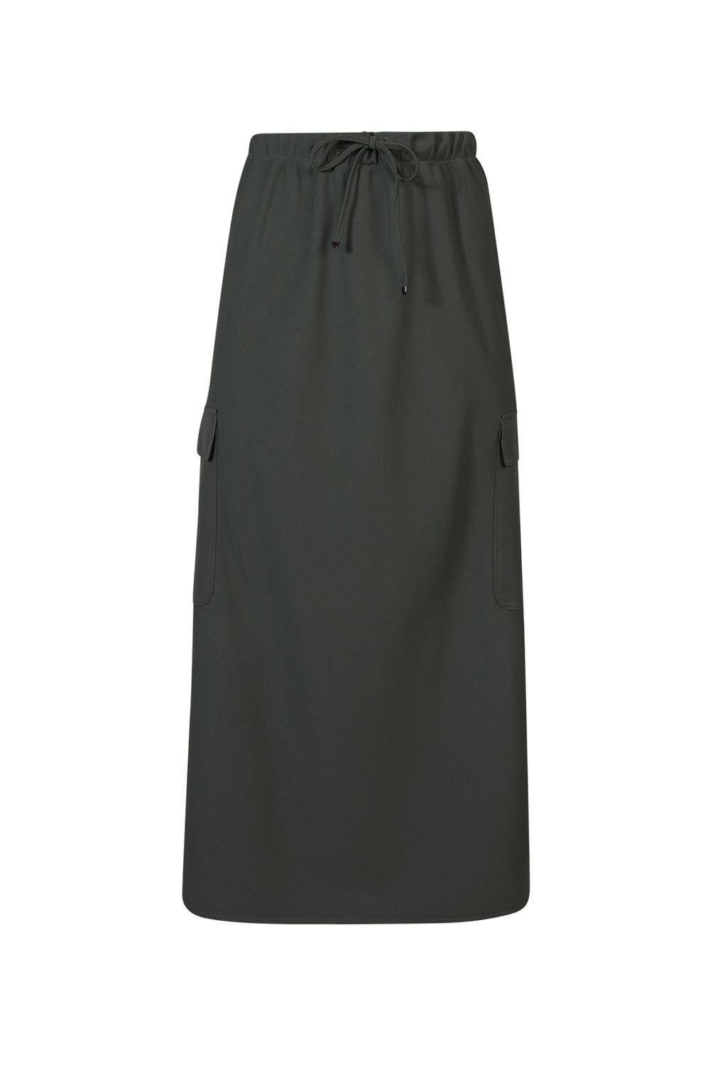 Cipher skirt from Madly Sweetly is the same fabrication as the Cipher Blazer and Cipher Coat (styles still to arrive). It will make a great pairing. She's A-line with an elasticated, drawstring waist. Featuring angled cargo pockets at side seams.