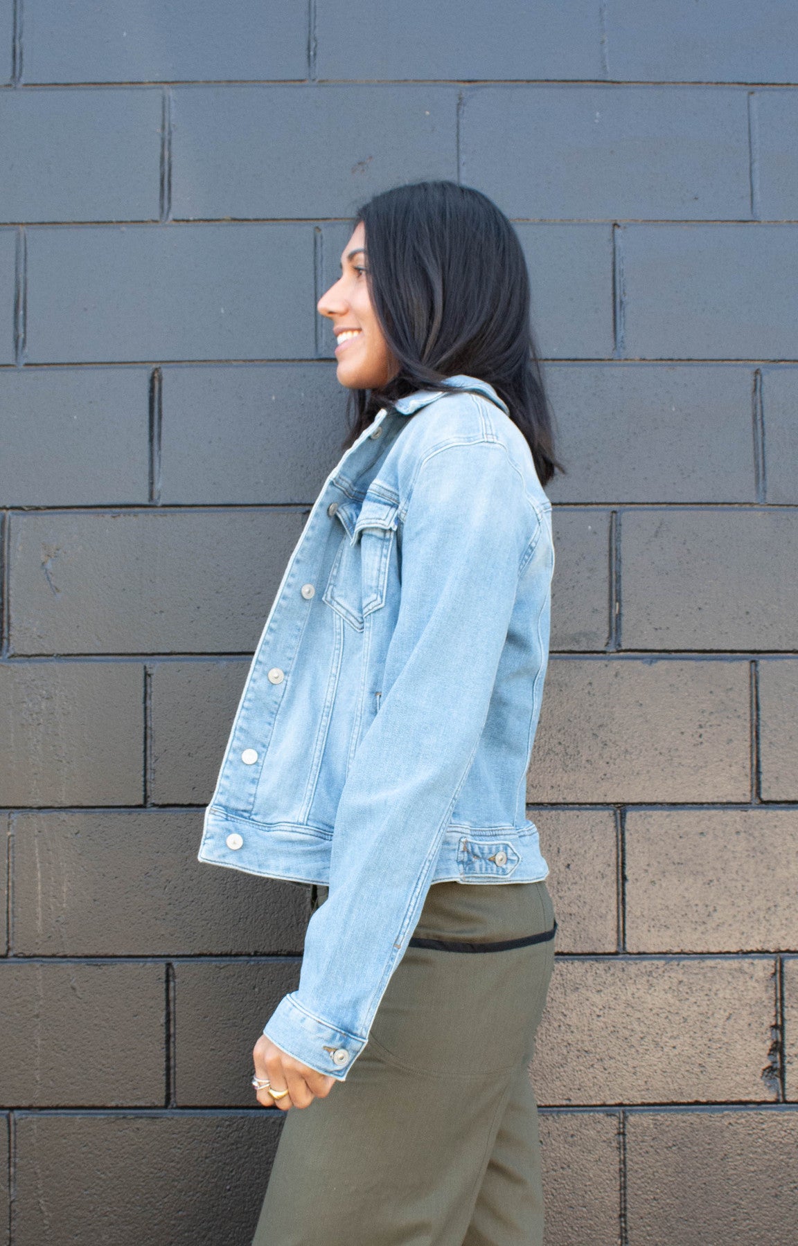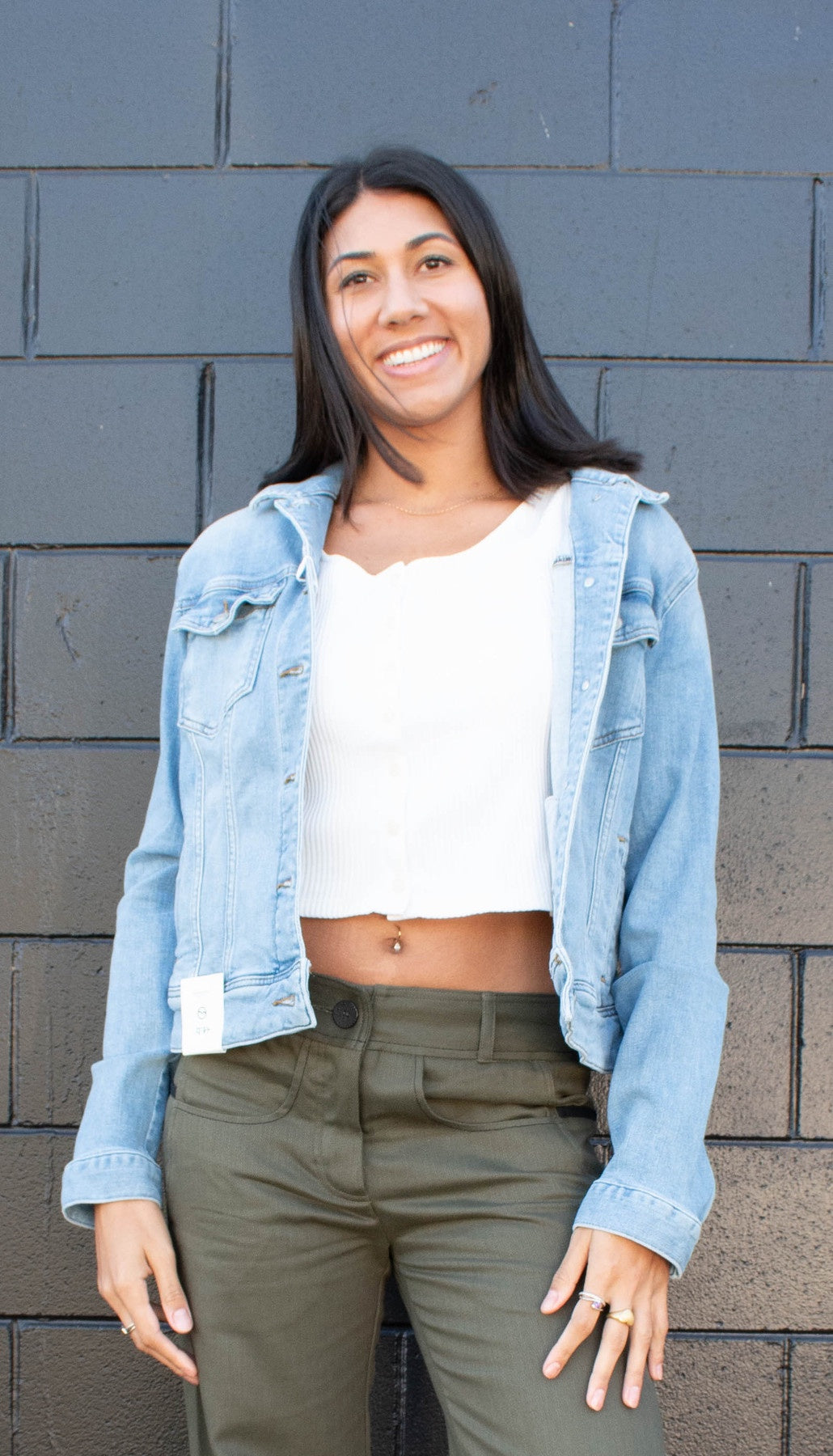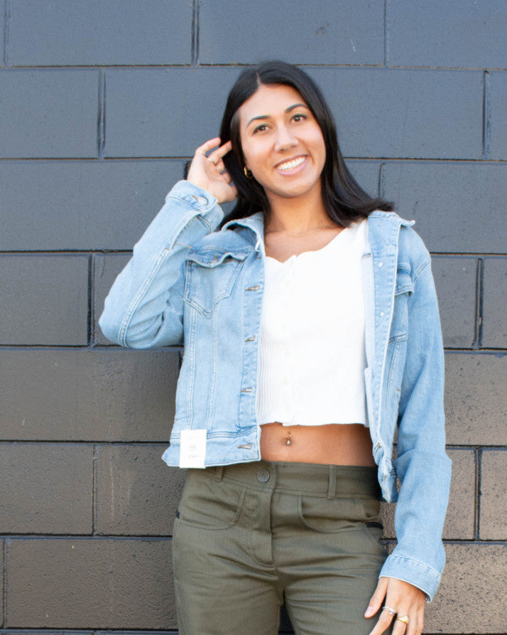 This jacket is a cropped style and has a longer arm length so everything fits in all the right places. Two side pockets and two patch pockets, one with small LTB logo. In a classic light denim wash this jacket can take any look from day to night.