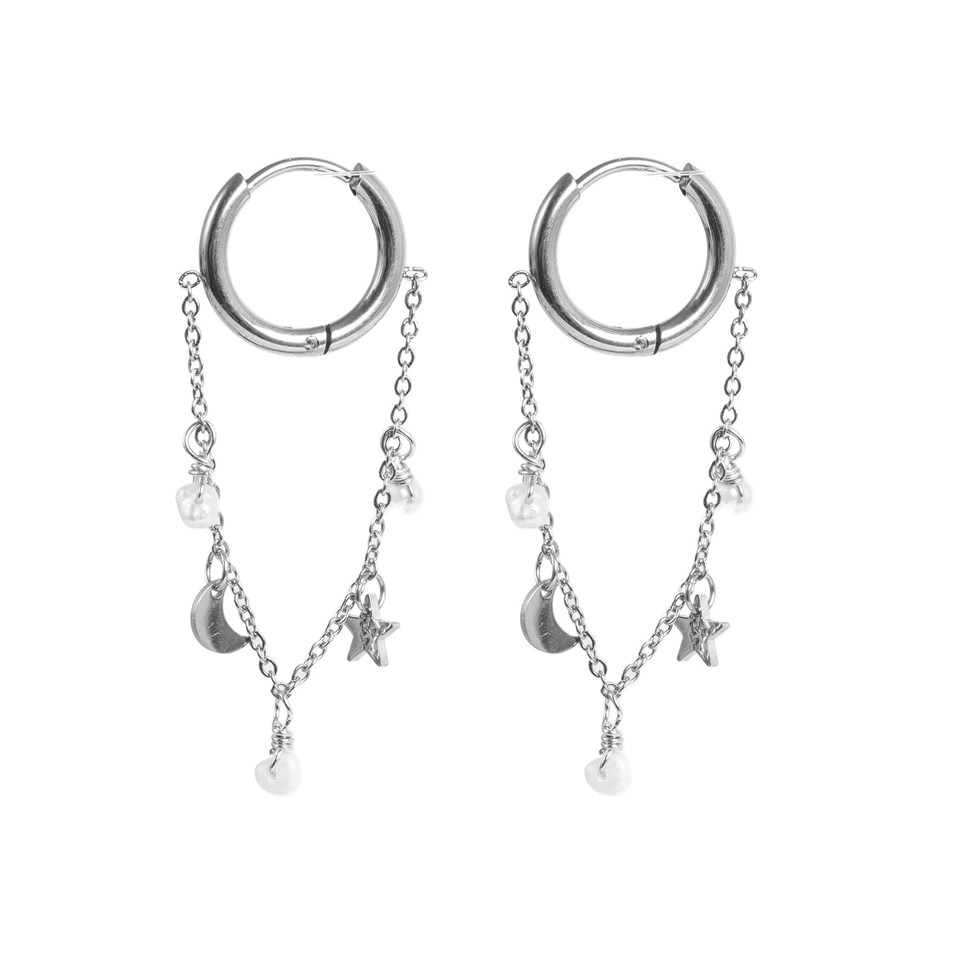 Super delicate and pretty earrings from A&C Oslo, with dangling stars and moons! The earrings are made of real steel. Steel jewelry has a timeless, clean look and is known for being of very high quality.