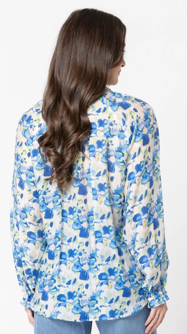 Features Long Sleeves with shirred cuffs, button down front and v neckline. Standard Fit
