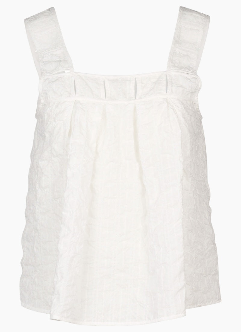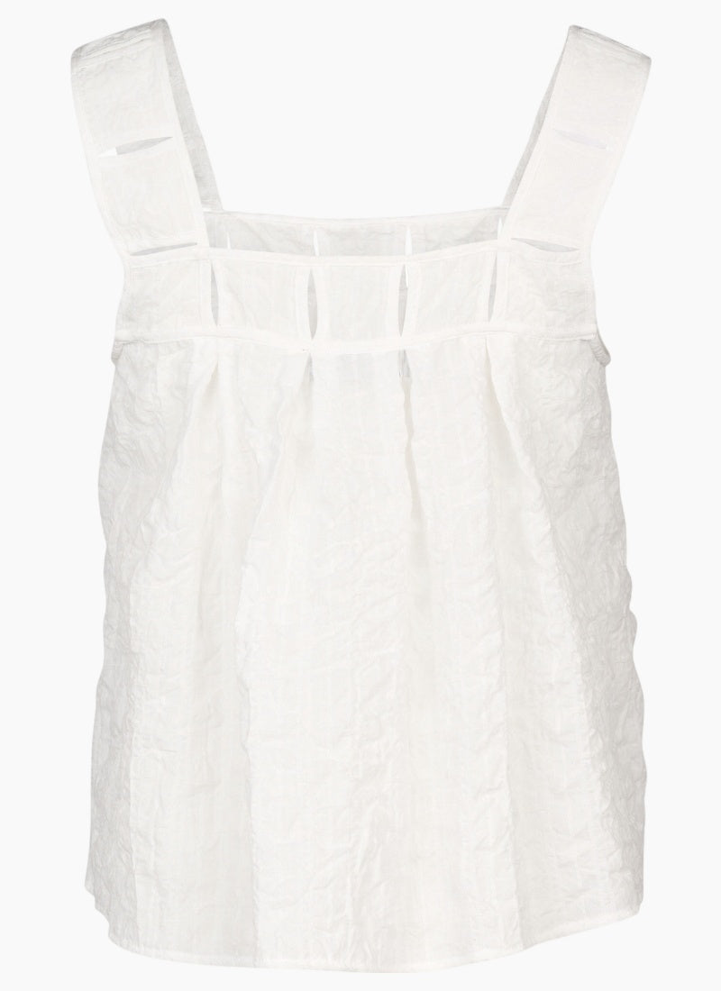 Made from lightweight cotton with a subtle checkered texture, the Evolve Top from Knewe is sleeveless and features wide straps and a squared neckline.