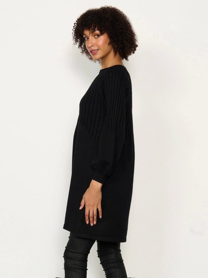 The Half Rib Tunic by Caju is a gorgeous lightweight tunic with a long puff sleeve and a ribbed top half and sleeve! Features a crew neck with a v-insert.