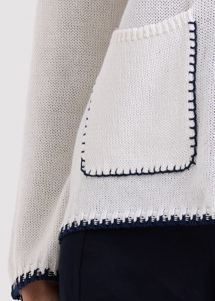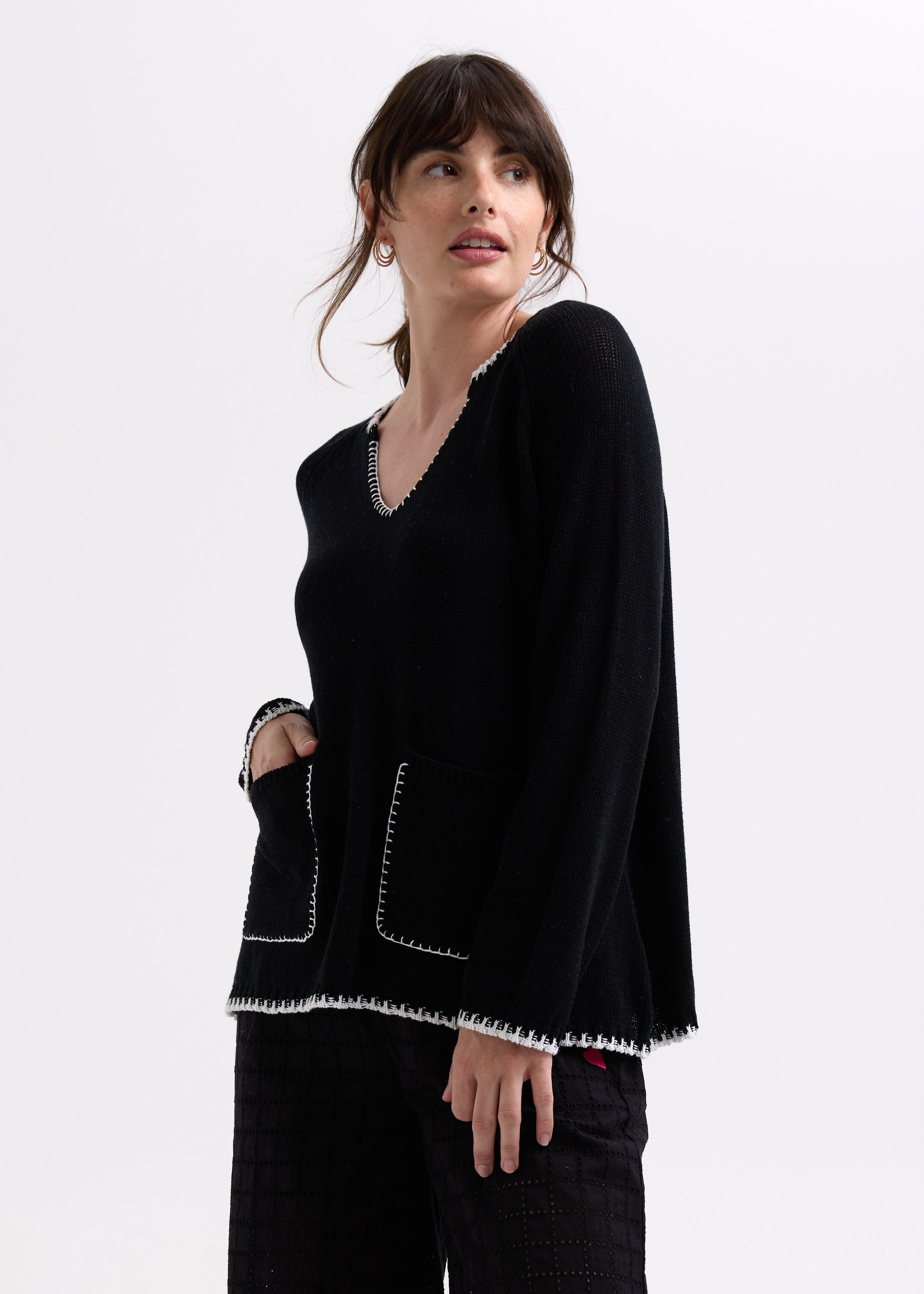 We think the Handwork Trim ALine jumper is going to be a winner this summer. Cotton knit that is easy to wear and breathable, fun contrast stitching, vneck for flattering neckline, patch pockets, the list goes on. Pairs super well with whites and denims.