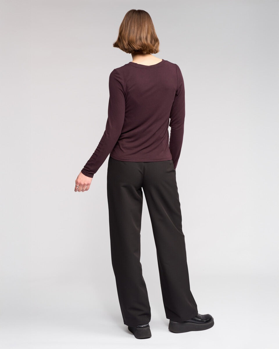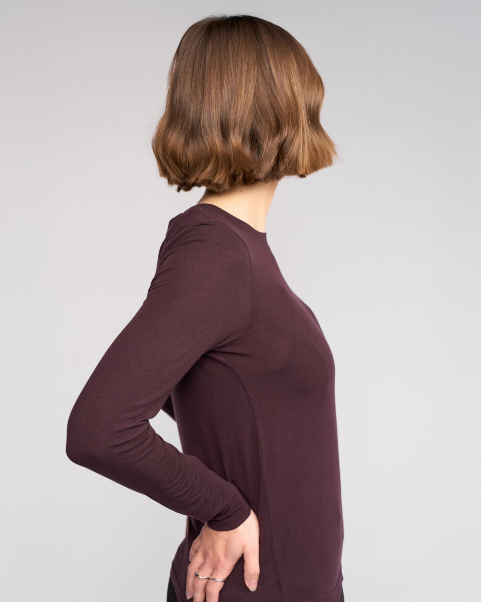 Your next fav everyday long sleeve top in Raisin, a rich deep purplish hue. Crafted from a soft Tencel, wool, and elastane blend and featuring a round neckline and a relaxed comfortable fit, this versatile top is perfect for layering or wearing on its own.