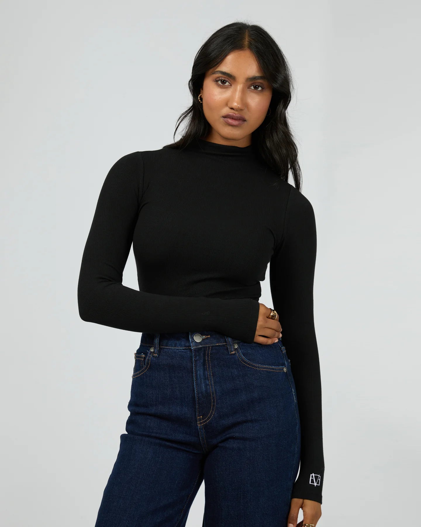 A great, affordable wardrobe staple. Simplicity meets comfort in the Icon Mock Neck L/S Top from All About Eve.