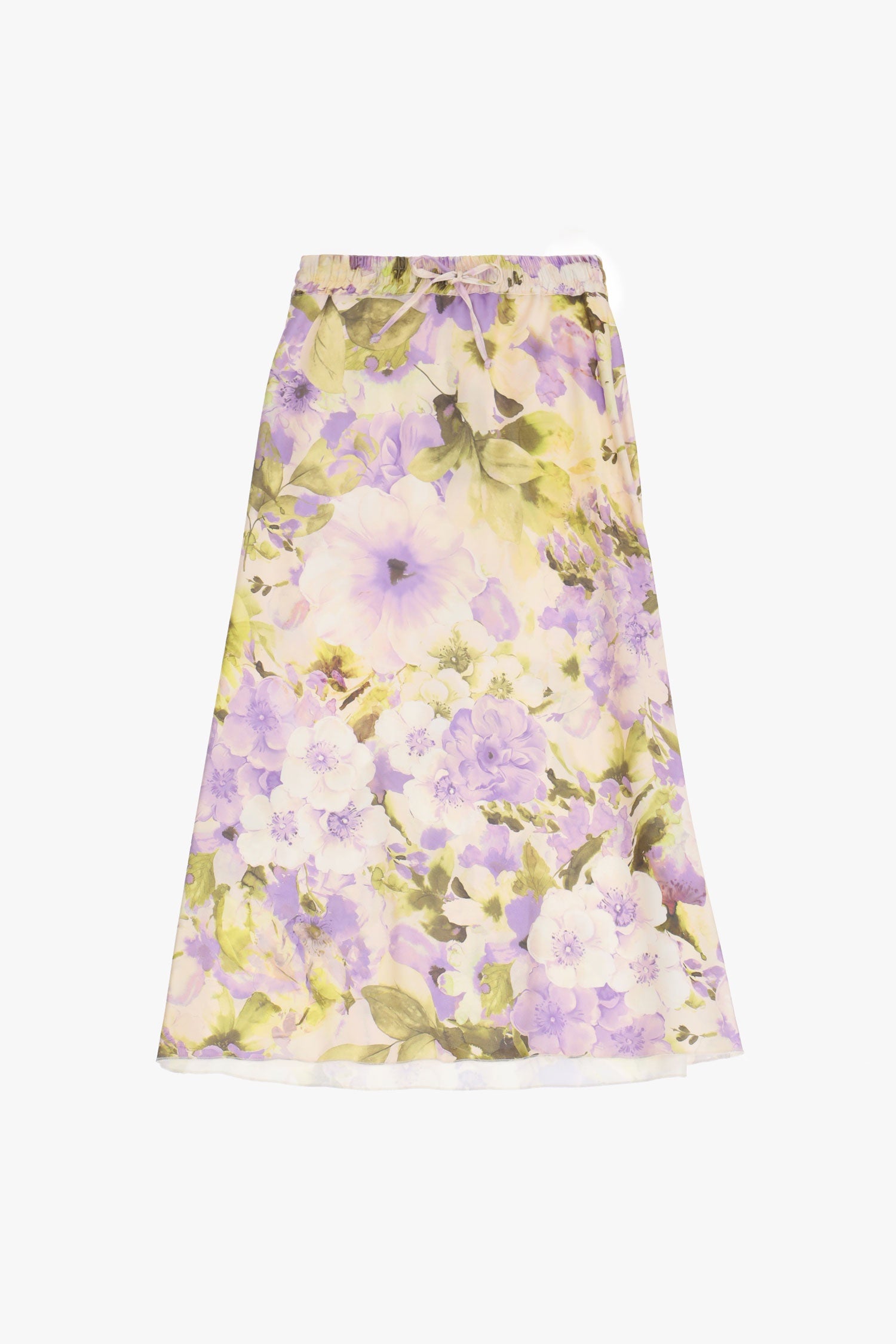 Aline floral print skirt from Dixie. The simple Aline makes it easy to wear, while the floral print of limes and mauves explodes in a riot of creativity.