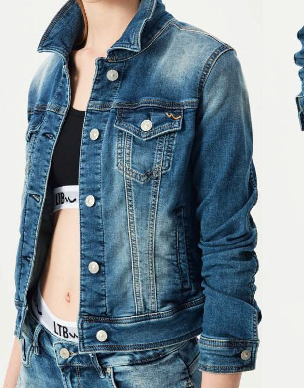 Classic denim jacket from LTB. Destin is a repeater style known for soft stretch denim, wash detail on the front, side and front pockets and classic silver buttons.