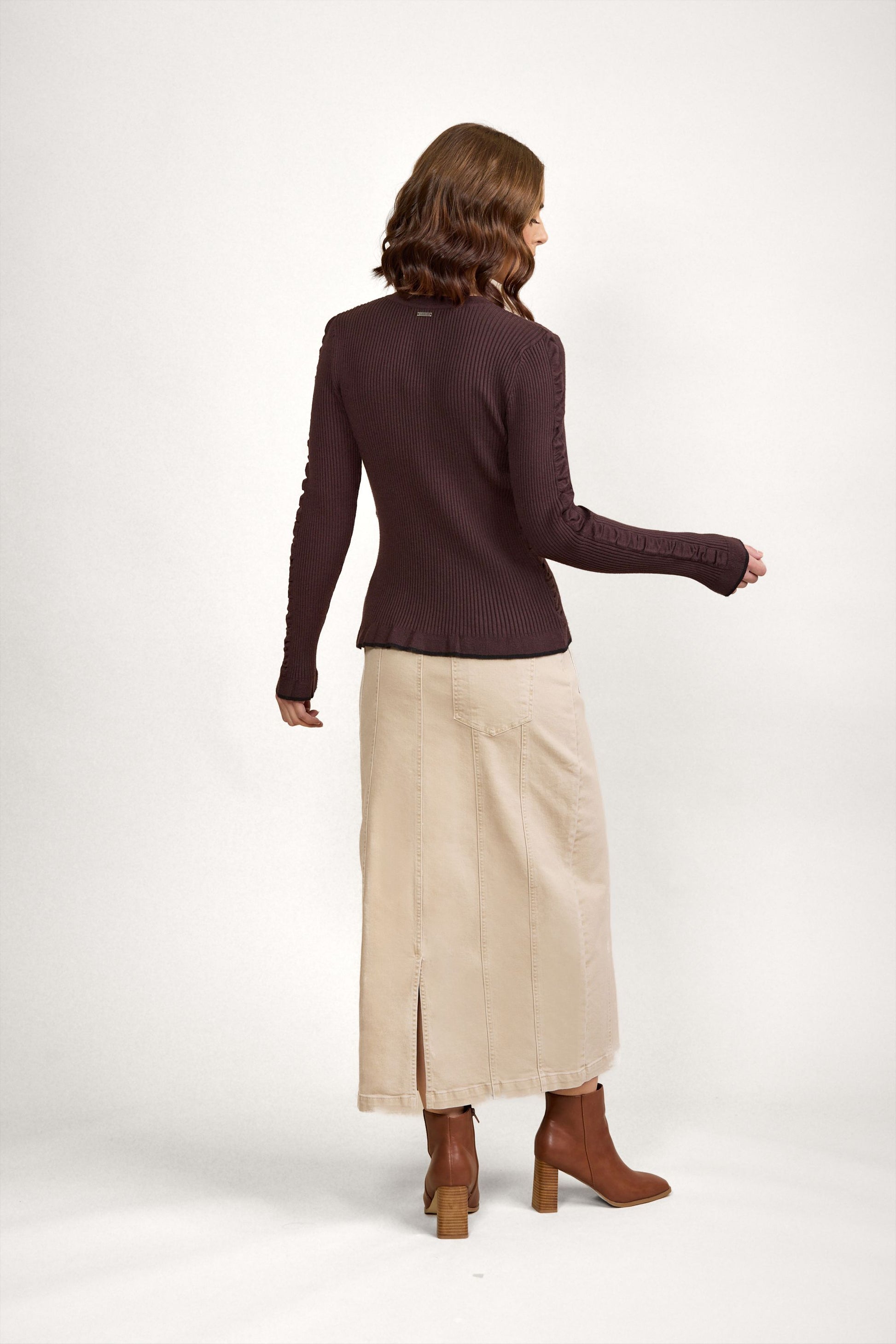 • Long sleeves with side panel detail along outer edge and cuff