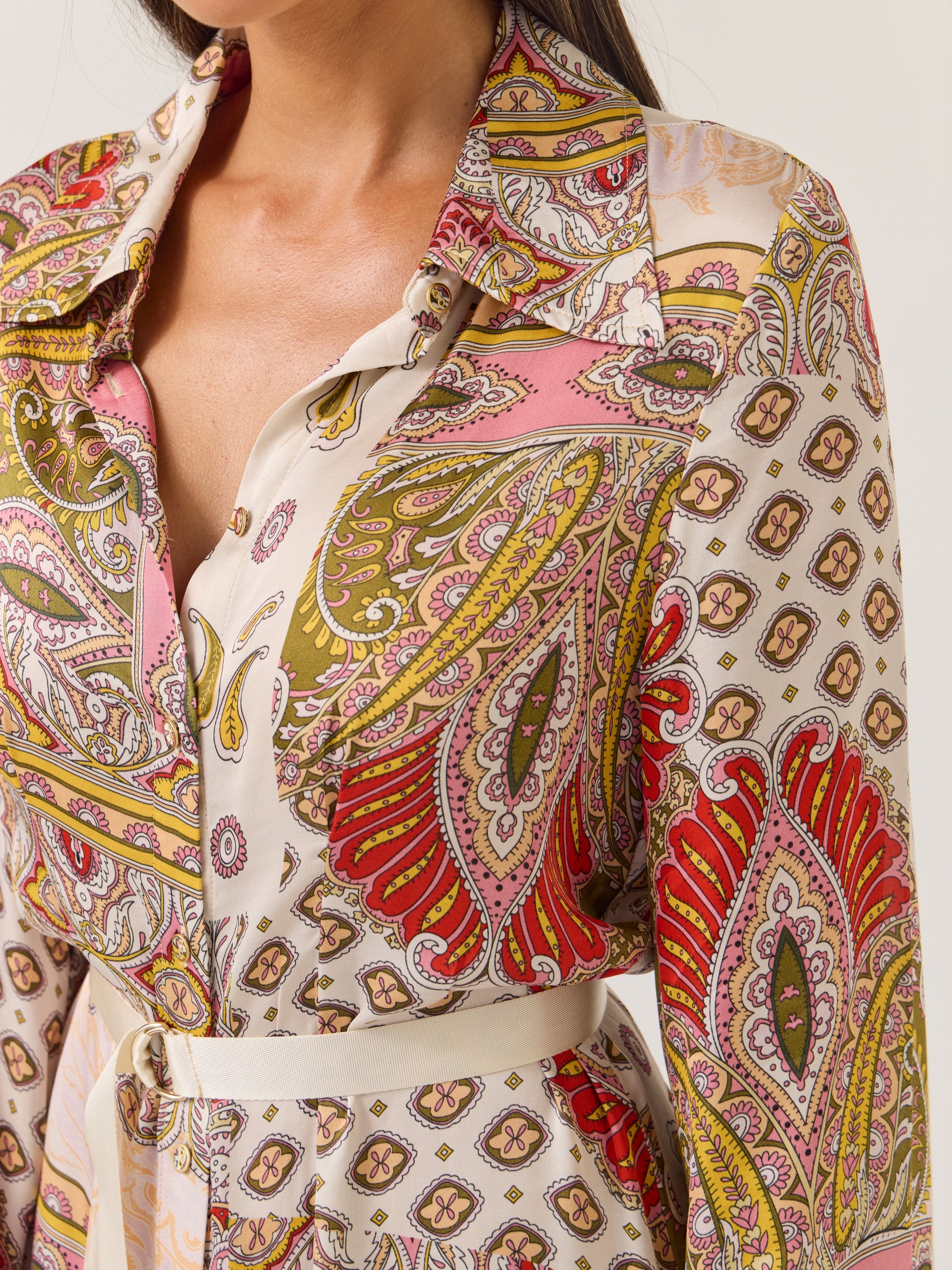 Introducing the stunning Mala Dress in Sunset Paisley from Tuesday Label. This enchanting maxi dress is perfect for those who love to make a statement in style.