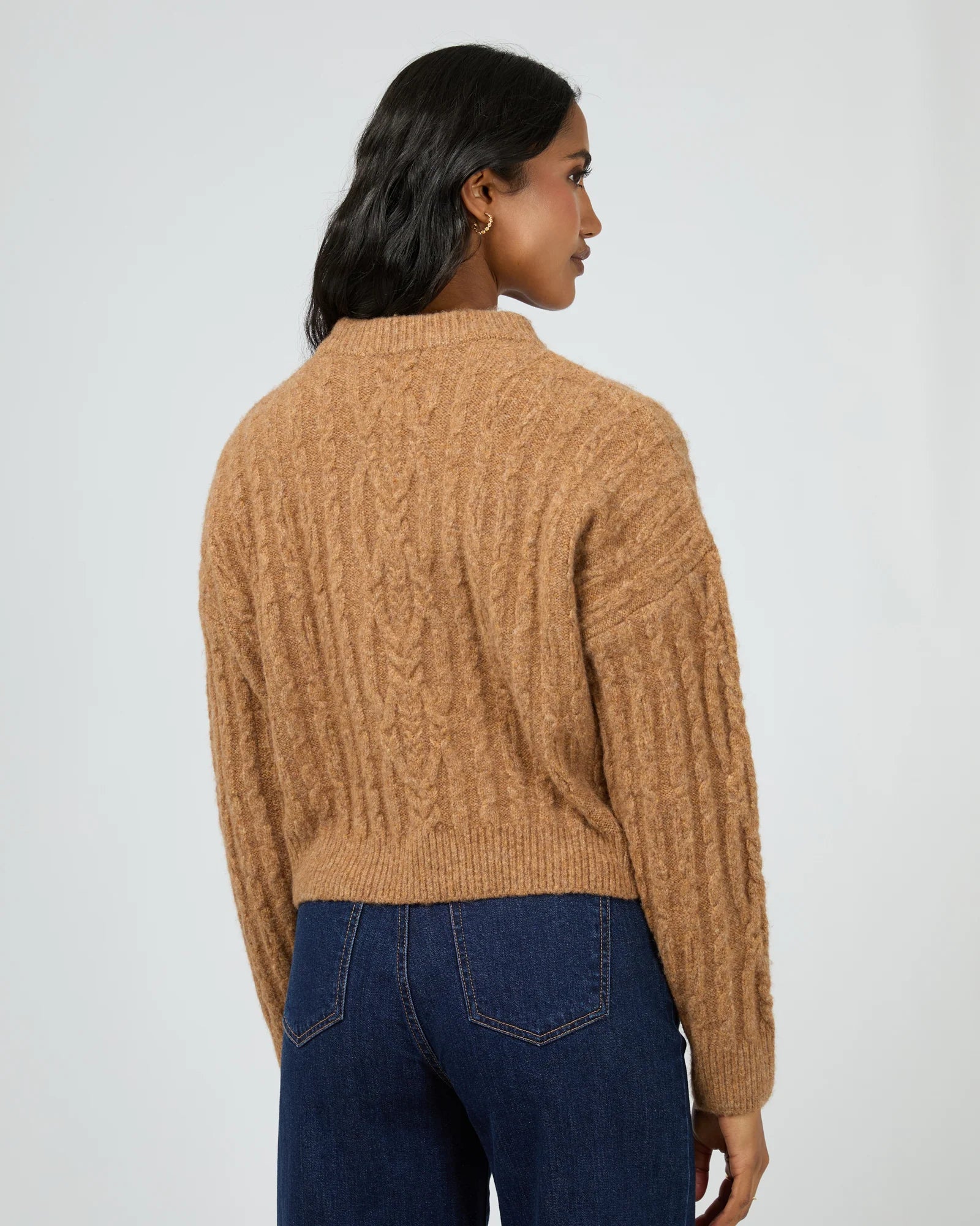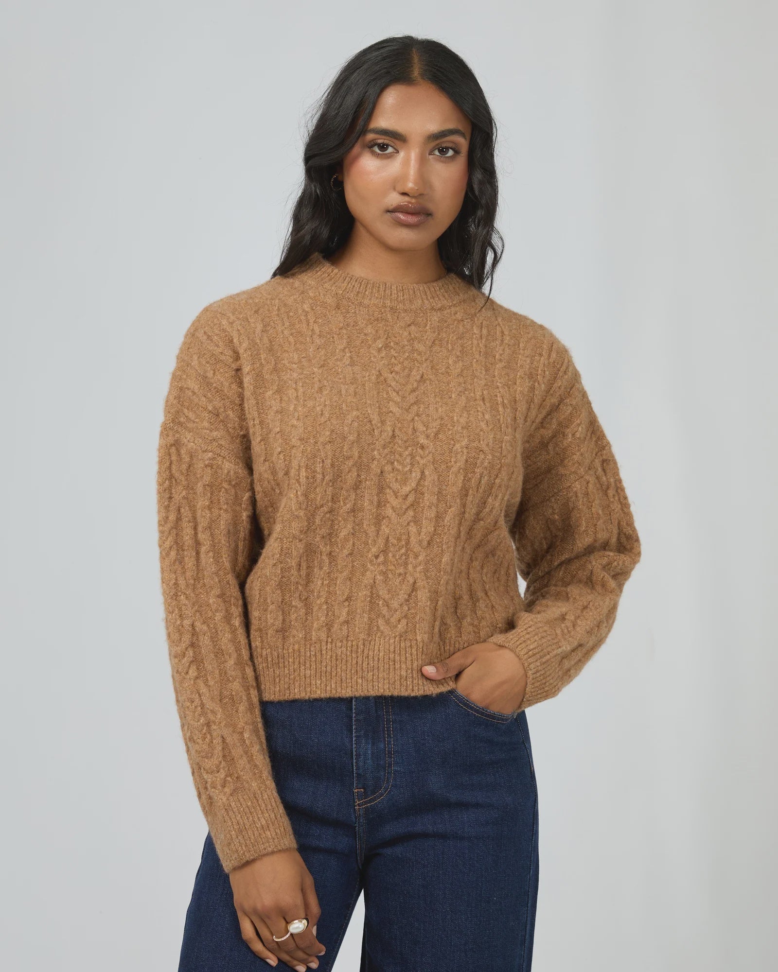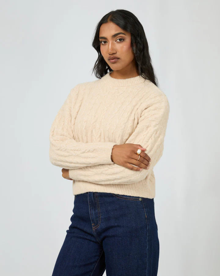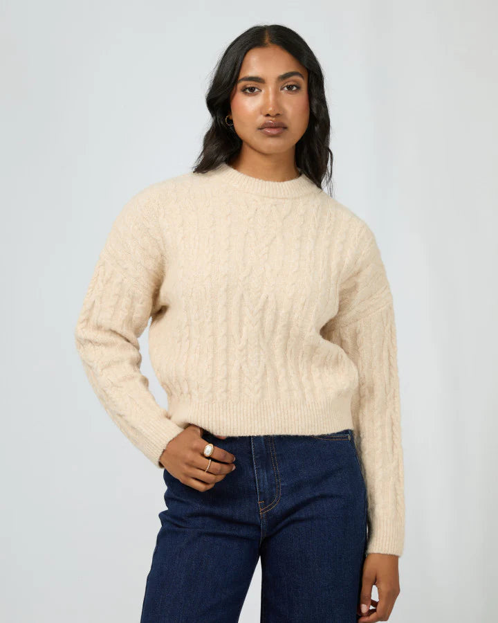The Margaux Cable Knit from All About Eve is a timeless piece of traditional knitwear, featuring a classic cable design that adds texture and sophistication. Available in vintage white (which is a real creamy soft latte colour) and tan colours, this soft and cozy sweater offers both warmth and style.