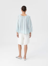 The three-quarter length sleeves are finished with adjustable drawstring ties for customisable styling, while the flowing cut delivers comfortable, unrestricted movement throughout the day.