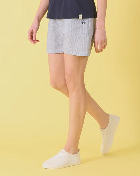 Featuring playful navy and white stripes, these above-the-knee shorts combine breathable linen and cotton for all-day comfort. Handy pockets add a practical touch, perfect for keeping essentials close while you enjoy your day in style.