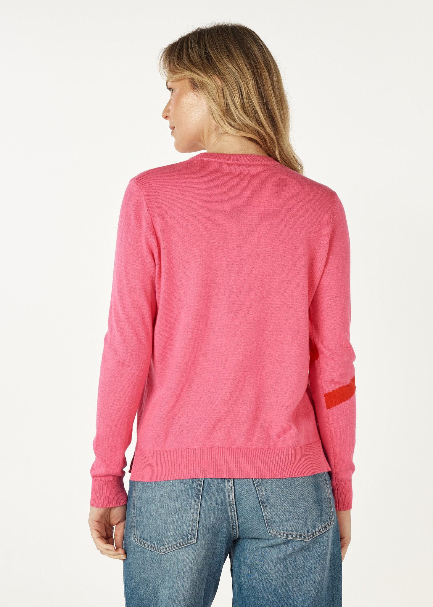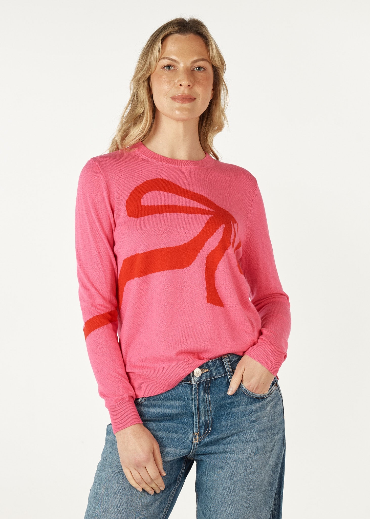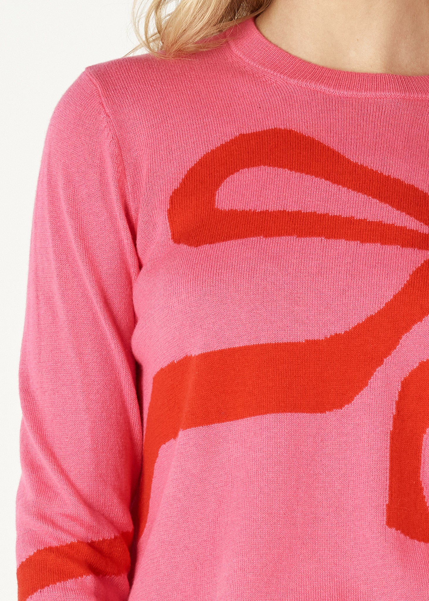 Rubi Bow is your fun and funky pink and red sweater for this winter. Crew neck, and standard fit for size, this one is a winner.