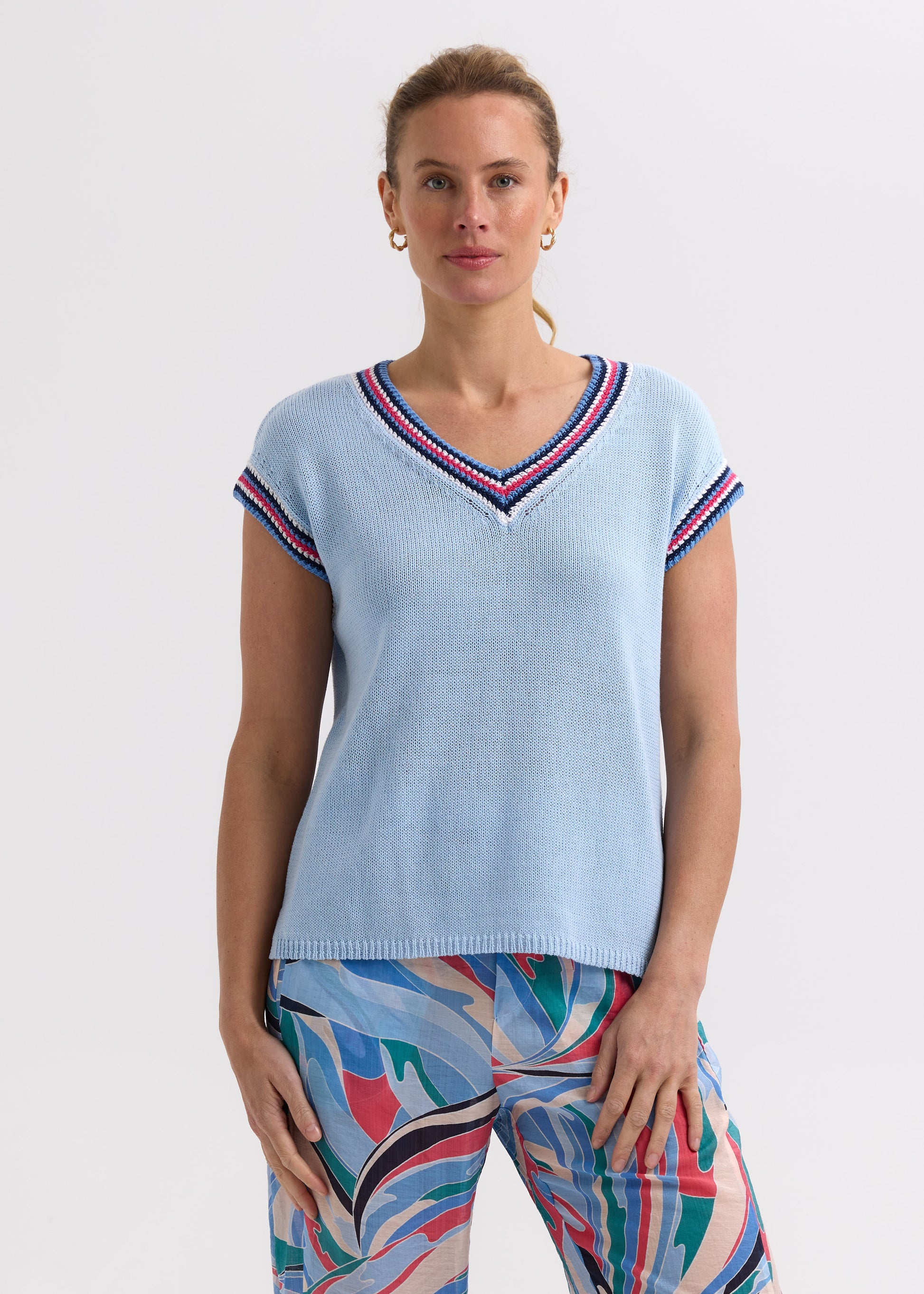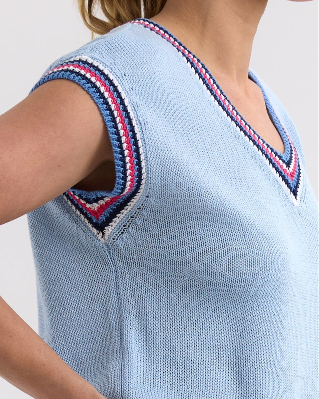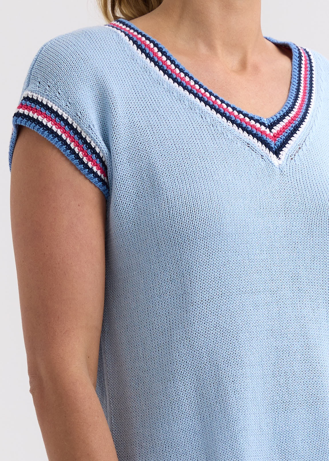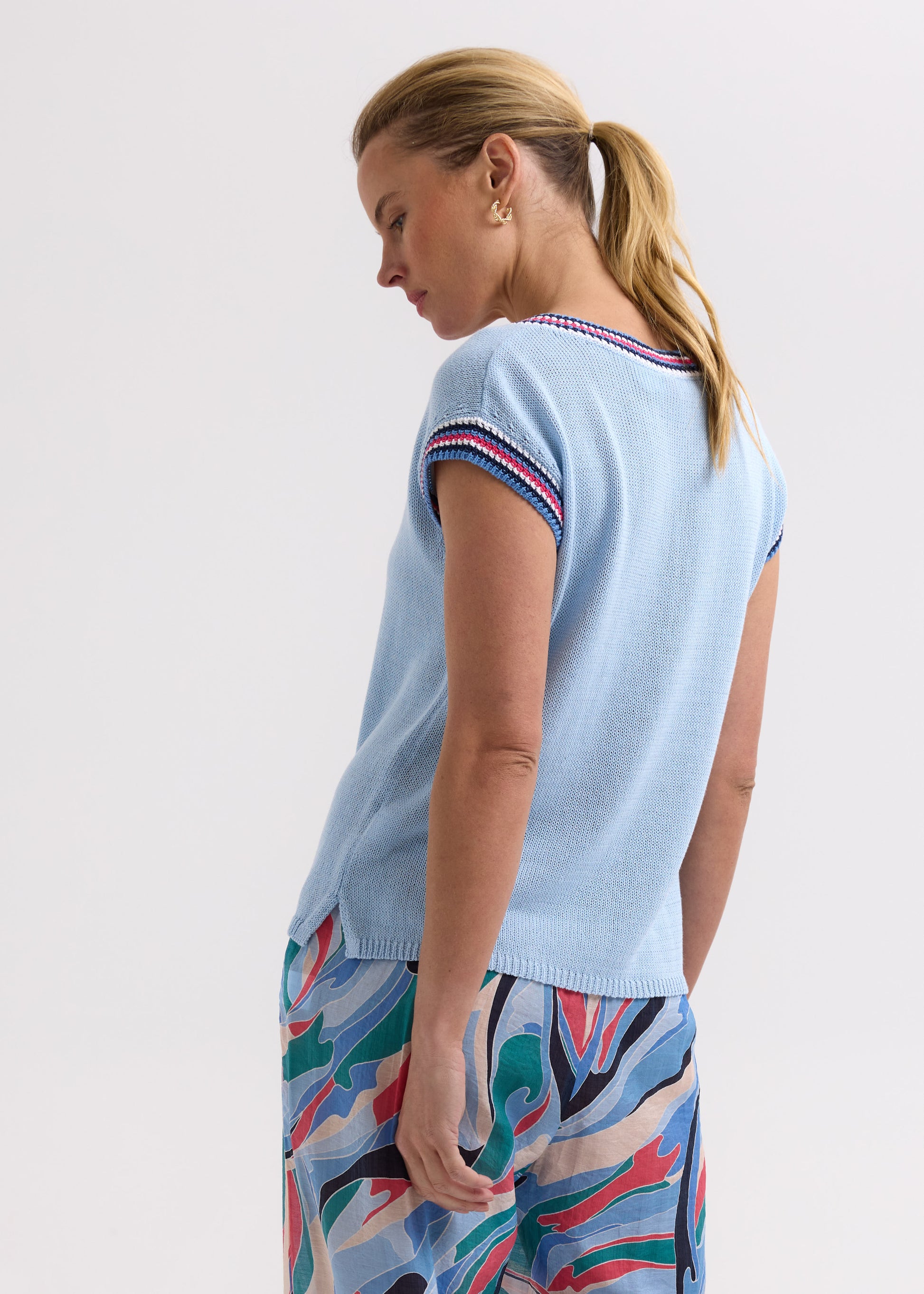 Very funky cotton top from Zaket & Plover, the Striped Trim top has a dropped shoulder forming a capped sleeve. Retro vibes with this one! pairs really well with whites and denims.