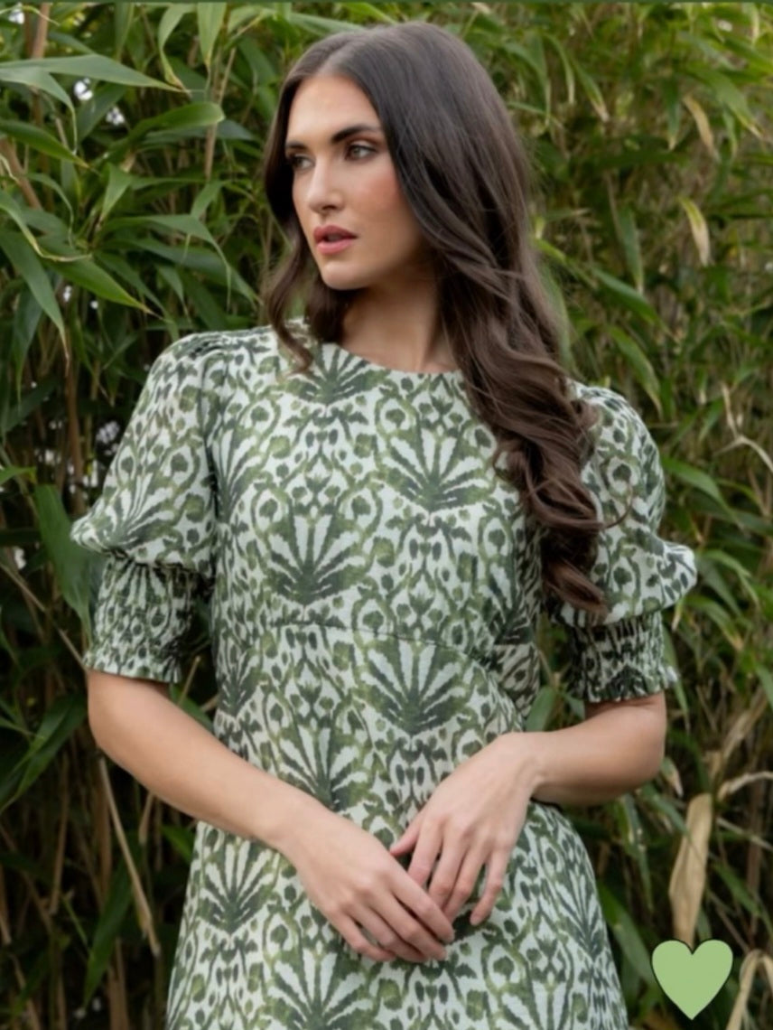 Seeking Lola are great at dresses with refined silhouettes. The Sunset dress has an empire waist which enhances the fluid fit of this figure-skimming midi, and framed by puff sleeves.