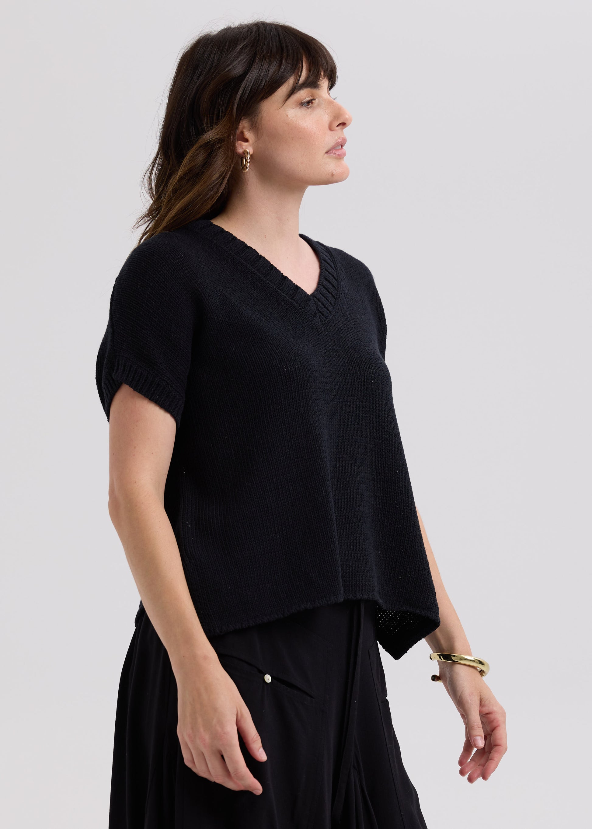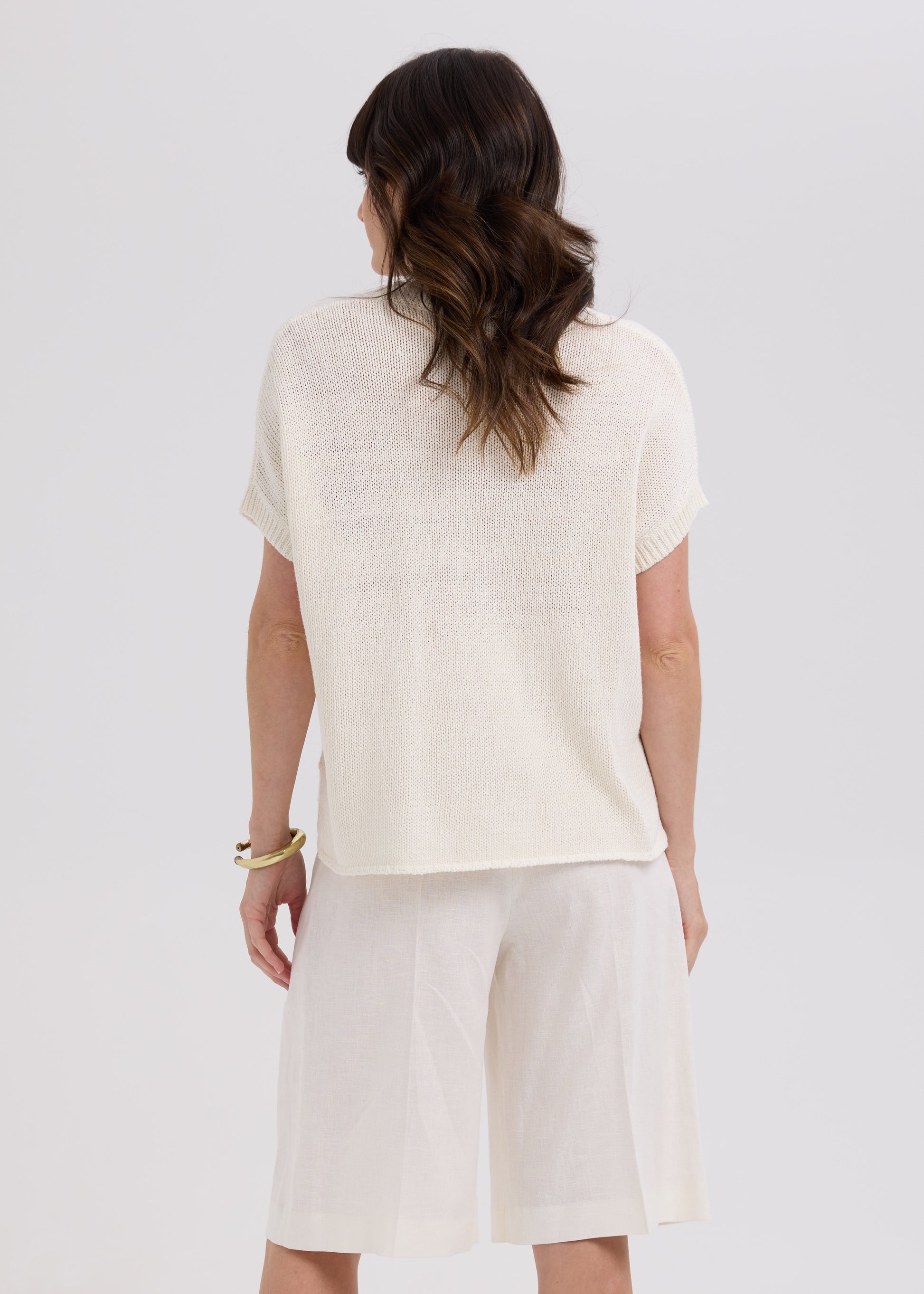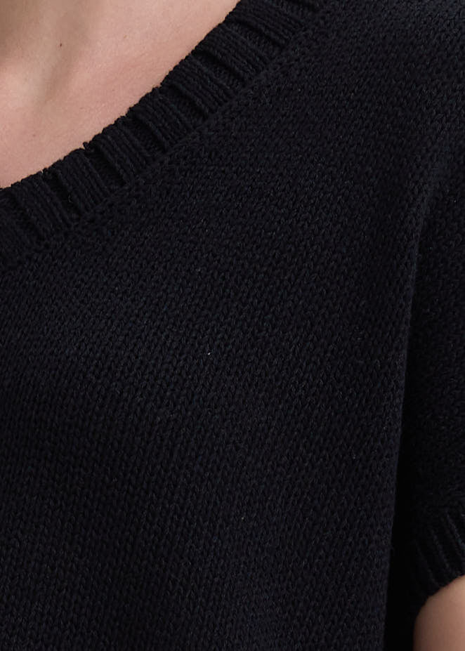 Effortlessly cool and endlessly versatile, the Textured V Top from LD + Co is a Linen Cotton blend knit with a soft V-neckline, dropped shoulders, a relaxed silhouette, and ribbed trims. Ideal for laid-back days and layering.